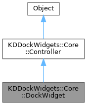 The DockWidget base-class. DockWidget and Core::DockWidget are only split in two so we can share some code with the QtQuick implementation, which also derives from Core::DockWidget. More...